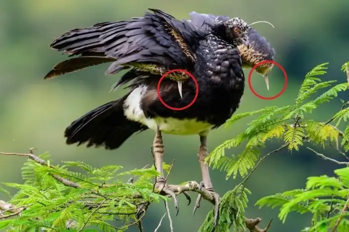 У большинства он рассасывается к рождению, но из-за сбоя при формировании эмбриона коготь может сохраниться у любой птицы на всю жизнь. А у некоторых видов коготь на крыльях — нормальное явление. Например, у гоацинов или рогатых паламедей.