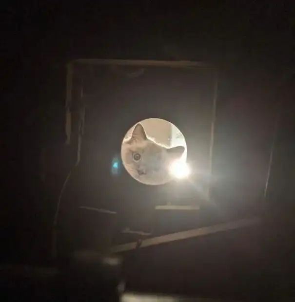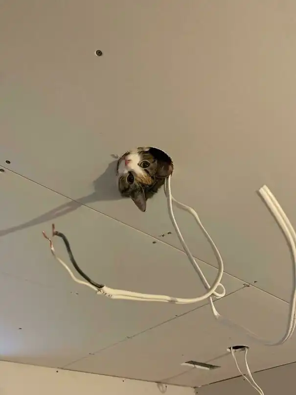 6. "Делаю ремонт в подвале, снял потолочную плитку. Застал кошку в таком положении"