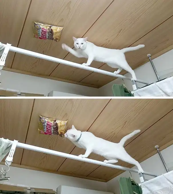 19. "Кошка научилась лазать по потолку как паук, чем сильно напугала маму"