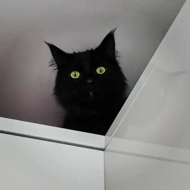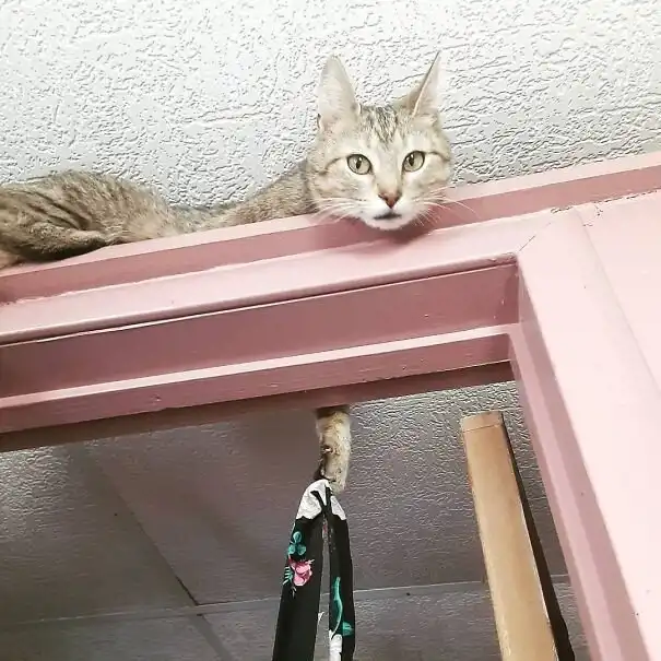 Коты, как известно, в доме главные, и порой они решают напомнить домашним о своем превосходстве, забравшись под самый потолок – если вообще не в потолок…