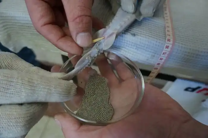 Каждая икринка становится на вес золота. Поэтому их собирают искусственно, чтобы с бОльшим успехом вырастить мальков.