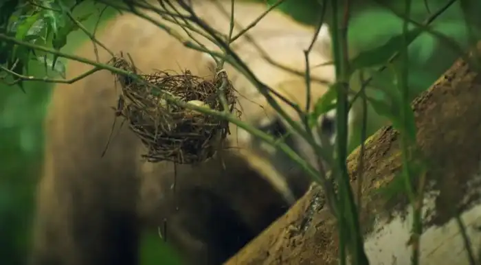 Хоть наши друзья долго запрягают, но едут, то бишь размножаются, довольно быстро. Насиживание и постановка на крыло занимают около месяца. Пока папа-птица гастролирует, мама-птица занимается бытом. Строительство гнезда — тоже на ней. Результат ее трудов — небольшой гамачок в ветвях высоко на дереве. В нем качается не более двух яиц, которые нужно насиживать около 19 дней. И еще две недели уйдёт на обучение птенчиков уму-разуму.