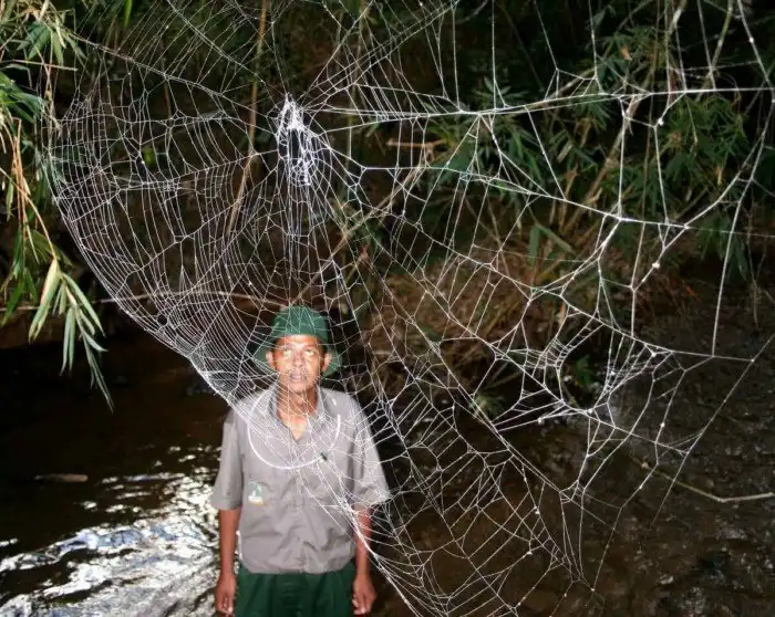 Прочная и толстая, эта паутина способна остановить кого угодно (сопоставимых с пауком размеров).