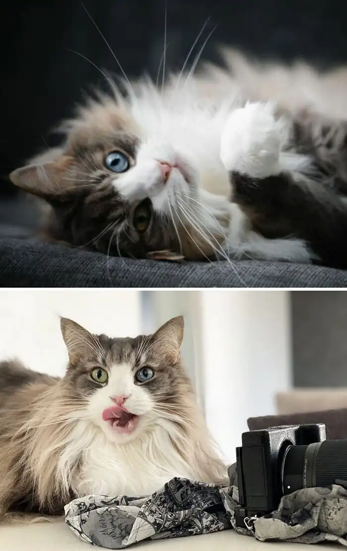 Норвежские лесные кошки - пушистики с историей. По версиям учёных, в Норвегию этих кошек завезли европейские торговцы примерно в XVI столетии. По другой версии, их привезли сами викинги. Эти кошки приспособились к суровому климату, ловили рыбу и лазали по деревьям - именно поэтому у них такие большие цепкие когти, и они, в большинстве, не боятся воды. Взглянем на несколько интересных кадров с этими красавцами!
