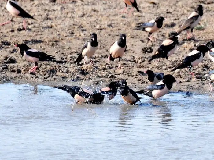 Когда вопрос продовольствия решён, нужно подумать о безопасности. На открытой местности ты становишься видной мишенью для хищников. Поэтому многие звери прокачали навык «красноречия» — они объединяются в крупные стада. Например, в одном стаде сайгаков может быть до 1000 голов! Птицы здесь тоже объединяются в многотысячные шумные стаи. Щурки и розовые скворцы собираются в группы по несколько сотен особей.