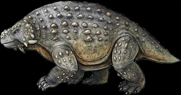 Для справки: пермь-триассовое вымирание, самое серьёзное из великих, уничтожило 96% морских видов и около 73% позвоночных животных. Вместе с ними вымерли и парарептилии, целый класс закованных в броню травоядных пельмешек. Да, один из них на картинке выше.