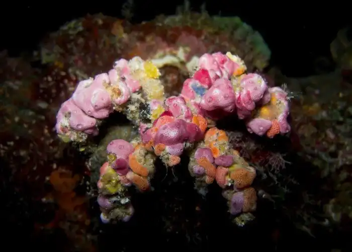 А вот эти водные организмы именуются порпитами. Размер одной особи не превышает и 3 см, однако им свойственно собираться в настолько большие колонии, что за ними спокойно прячутся некоторые виды рыб.