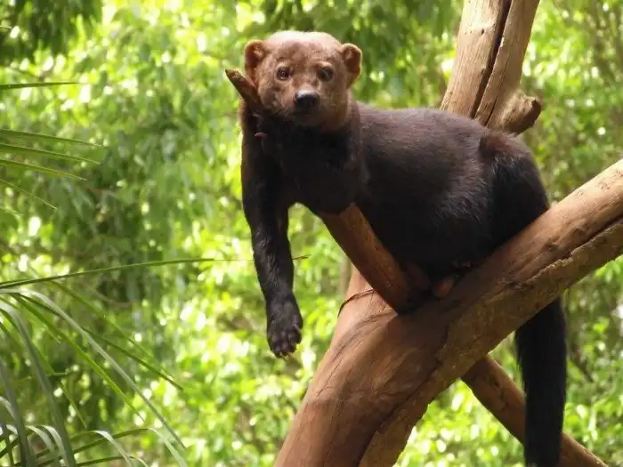 Похожего на хорька зверька зовут тайра. К слову, эти животные обладают отвратительным зрением, что не мешает им спокойно ползать туда и обратно по деревьям высоток свыше 40 метров.