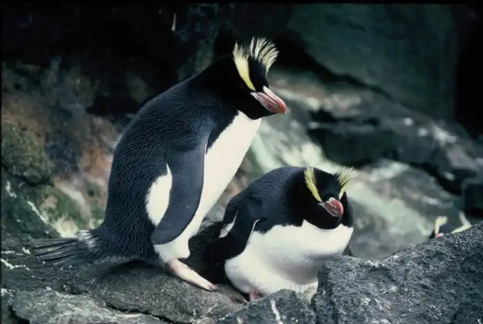 Гнёзда птицы устраивают на высоте в 70 метров. Не так уж и высоко, но давайте не забывать, что это ПИНГВИН — последняя птица, которую можно представить за паркуром. А большого хохлатого и представлять не надо — достаточно посмотреть, как он ловко взбирается по уступам и склонам.