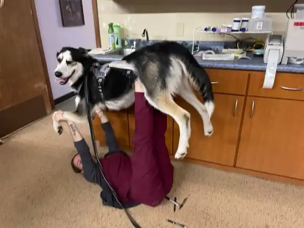 Пёс моей тёти немного поддался панике в кабинете у ветеринара