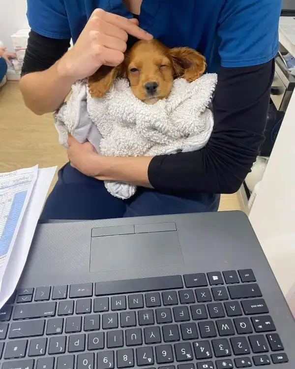 Моя сестра работает ветеринаром, и она брала мою собаку с собой на работу. Как-то раз я решила спросить её, как у него дела, и она прислала мне это…
