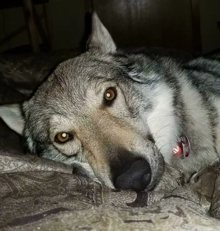 Локи - известная в соцсетях собака-волк, которая путешествует со своим хозяином