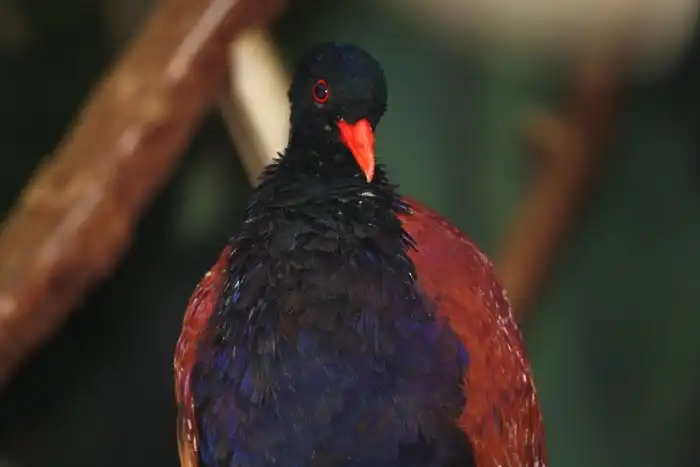 Если вы думаете, что городские голуби обжираются как не в себя, то спешу разочаровать: фазановый голубь вдвое больше наших сизарей — располневшие птахи в среднем набирают полкило и больше. Так что образ жизни у птаха исключительно наземный, как у курочки. Расцветкой пернатый тоже напоминает кур: черная тушка с ржаво-коричневыми крыльями, сине-фиолетовый хвост, блестящий затылок — ну разве не красавчик?
