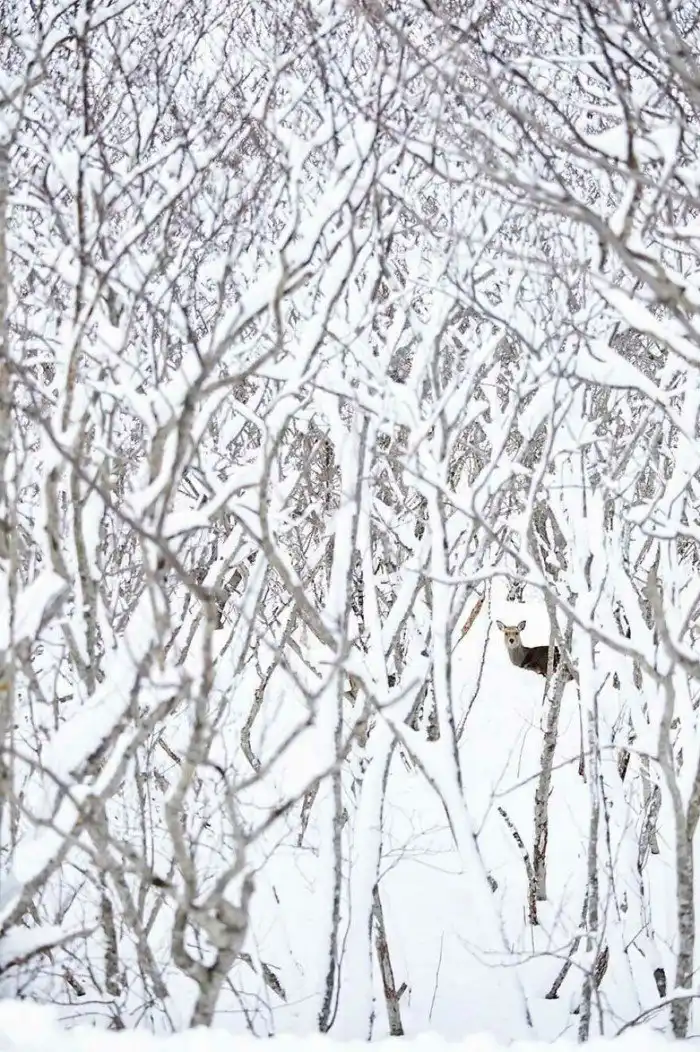 Зимняя страна чудес сильно отличается от того, что в идеале предпочитает пятнистый олень (лесные массивы с густым подлеском). Тем не менее, это изображение прекрасно.