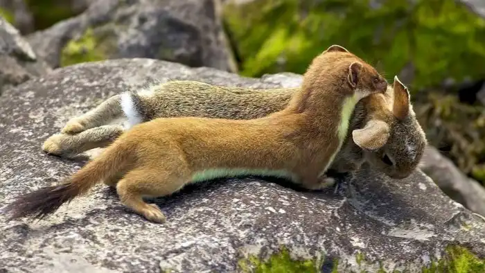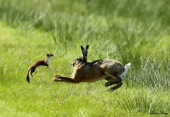 Горностай: Исполняет особый танец, отчего его жертвы могут умереть от страха ещё до атаки. Так он добывает добычу в 10 раз крупнее себя!