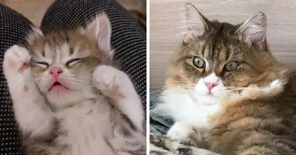 До чего же быстро дети растут. А котики растут еще быстрее. Грустно и одновременно забавно наблюдать, как крошечные комочки нежности превращаются в наглые, щекастые, пушистые морды.