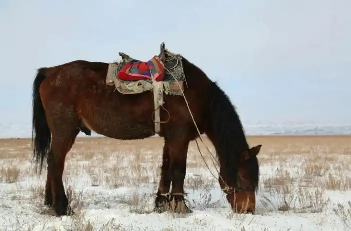 Зимой кони питаются тебенёвкой — выкапывают прошлогоднюю траву из-под снега. А зимы в степи не менее суровые, чем в тайге. Сугроб может вырастать до 40 сантиметров. Летом приходится не лучше, но казахские скакуны научились переносить жару и сухостой, по нескольку дней обходясь без воды вообще.