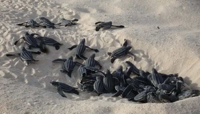 У кожистых черепах – фантастическая способность к размножению. Это единственный способ сберечь вид. Ведь детенышами готовы полакомиться, как сухопутные хищники и птицы, так и хищные рыбы. И там уж, как повезет.
