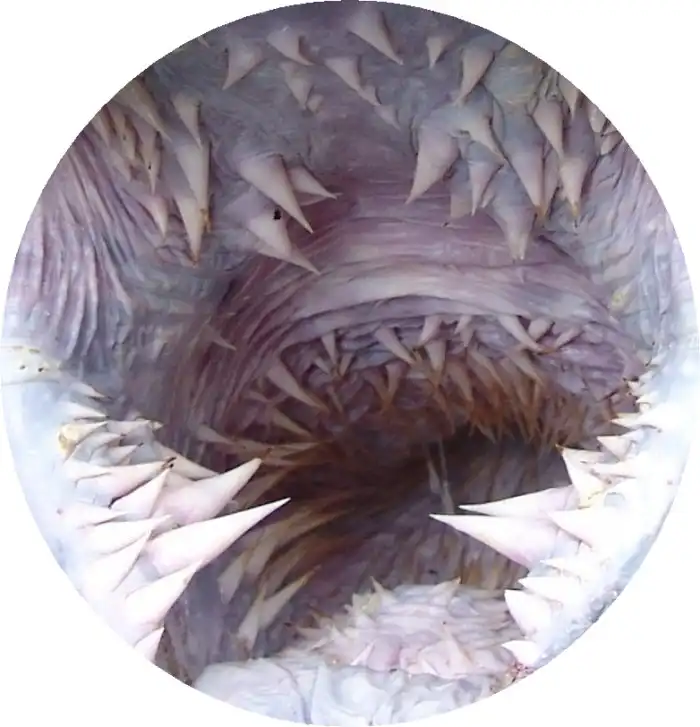Такое устройство пасти помогает черепахе заглатывать добычу и не дать ей убежать обратно. Весь ее пищевод "укомплектован" такими зубцами.