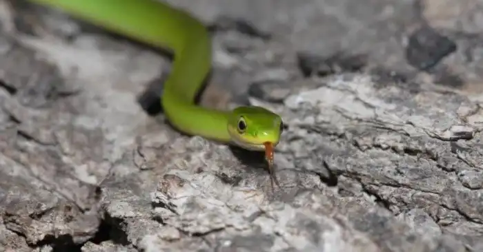 Змеи не обладают острым зрением. Они пугаются движения и реагируют на него. У большинства видов нет цветового зрения. Змея не может отличить вас от дерева или камня, если вы стоите перед ней совершенно неподвижно.