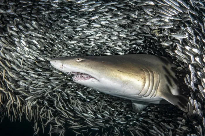 Это единственный вид акул, который научился заглатывать воздух с поверхности и сохранять его в желудке. Таким образом, песчаная акула обеспечивает себе нейтральную плавучесть — ей больше не нужно шевелиться, чтобы удерживать себя в толще воды. Так, несмотря на свои габариты, хищница воспринимается окружающими не более, чем препятствием. Но стоит жертве приблизиться, и первый звук, что она услышит — клацанье сжимающей её челюсти.
