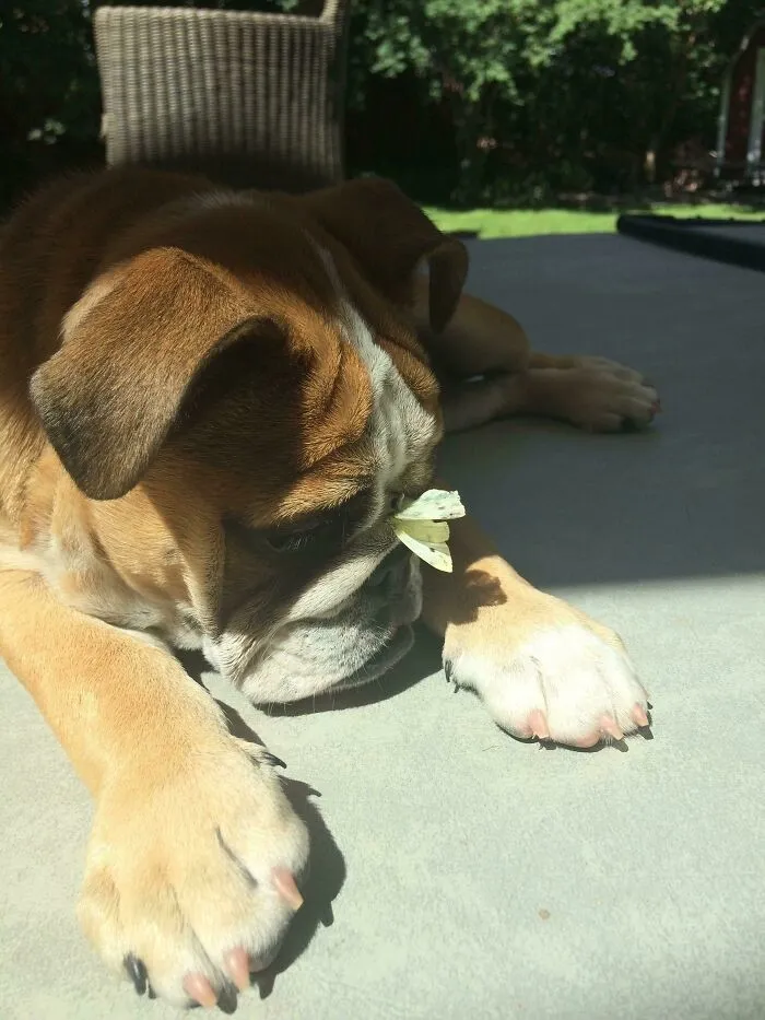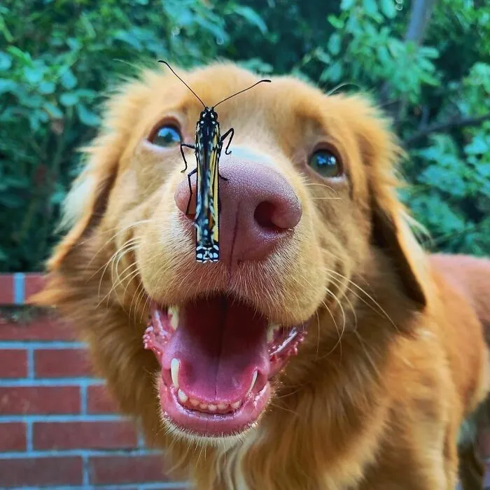 "На нашу собаку приземлилась бабочка, и та не знает, что теперь делать"