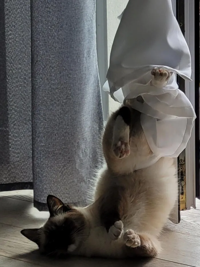 2. Я нашла своего кота висящим вниз головой, и он не делал никаких попыток освободиться