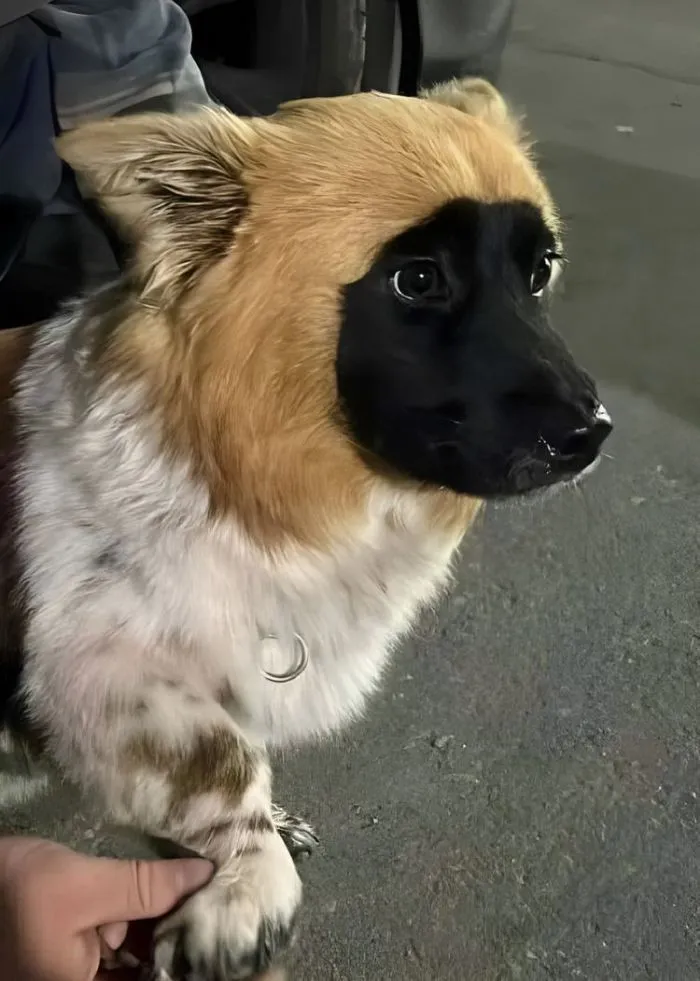 Расцветка мордочки этого пёсика выглядит так, словно он в чёрной маске