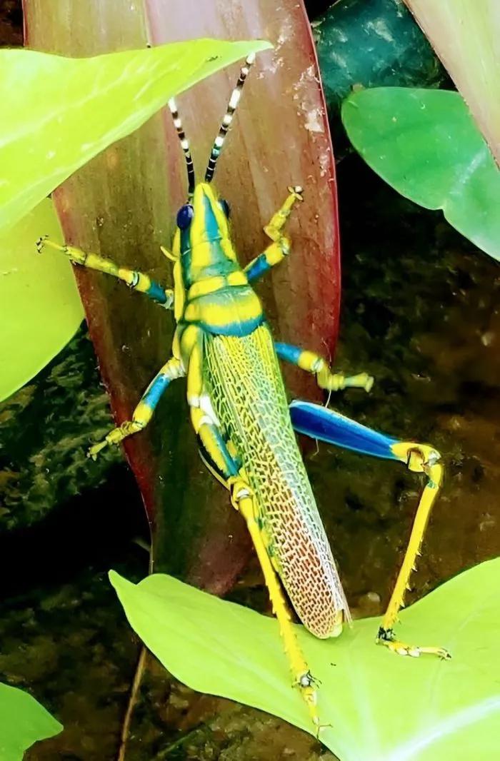 Красочный кузнечик, найденный в питомнике на окраине Дели, Индия