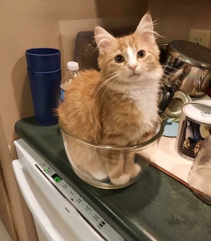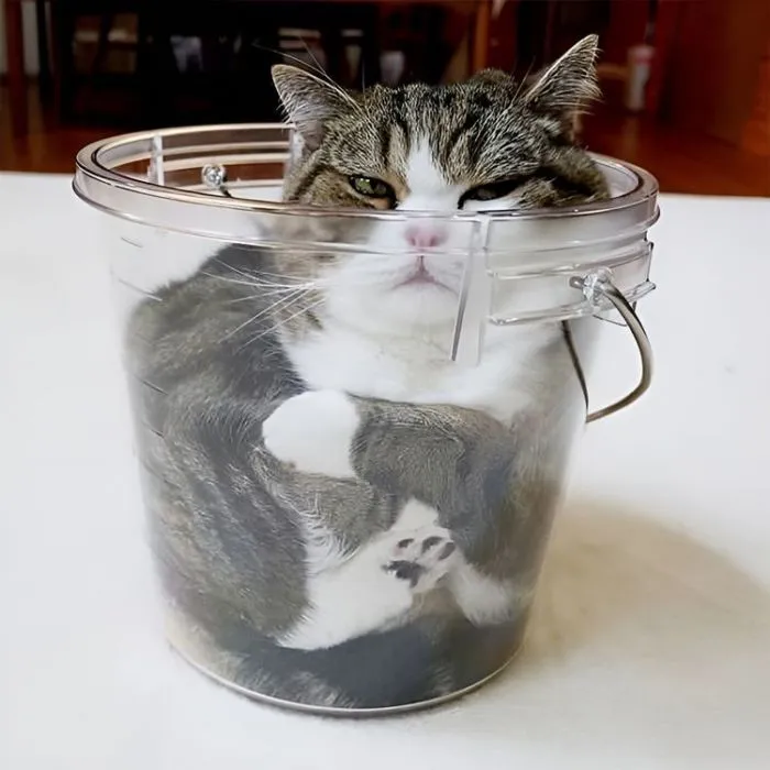 От ваз и детских бутылочек до коробок и мисок, эти похожие на жидкость существа, способны втиснуться практически во что угодно, порой помещая себя этим в ловушку. Неудивительно, что владельцы кошек любят делиться фотографиями своих питомцев в этих нелепых и максимально забавных местах и позах.