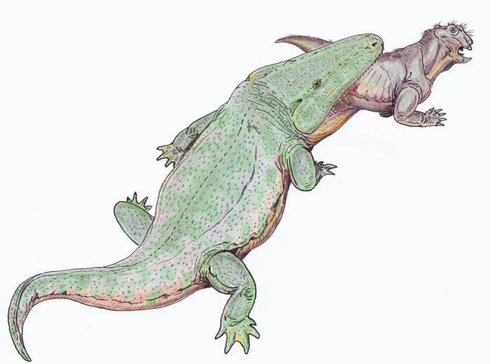 И охотились они тоже как грозные рептилии: сидели в засаде, пока рядом не проплывёт рыбка или амфибия. А потом рывок, укус — и жертва надёжно зафиксирована в пасти, усеянной множеством нёбных зубов. Но не только водные жители были в опасности. Амфибия могла заграбастать и сухопутную зверушку, неаккуратно подошедшую к водопою.