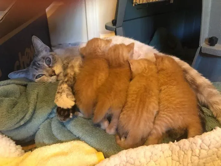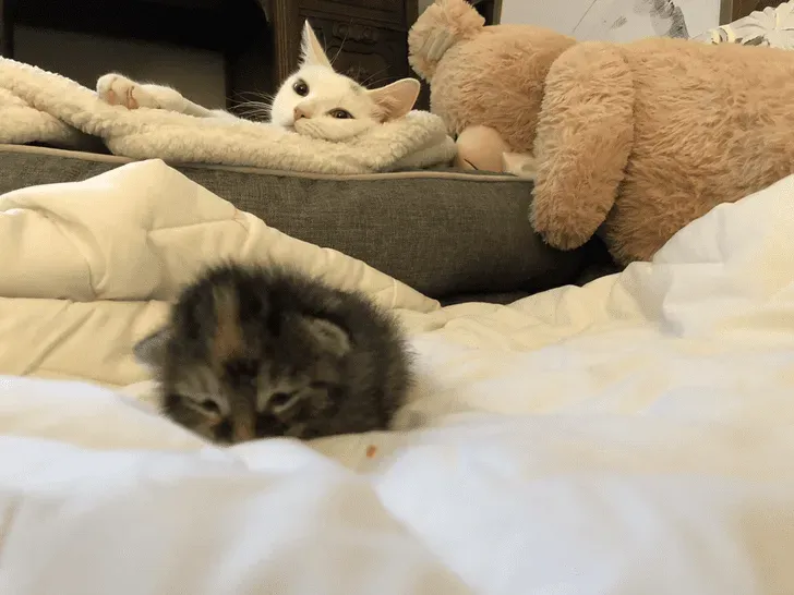 Когда котята уже большие, но все равно не дают маме спать одной