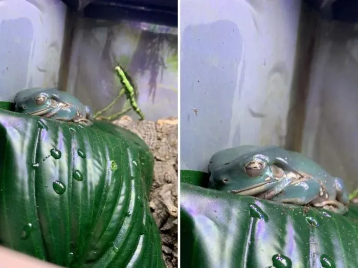 Самец ящерицы держит свою самку, чтобы она могла вздремнуть