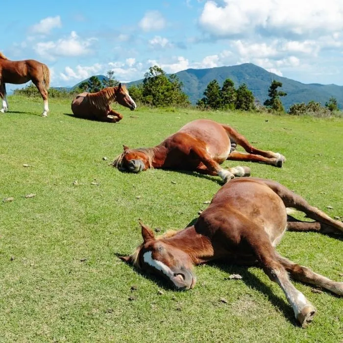 Если лошадь хочет ненадолго вздремнуть, то она сделает это в стоячем положении. Для полноценного отдыха скакуну нужно поспать лёжа на боку.