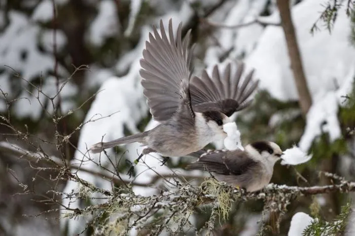 Первая отгадка — суровые климатические условия. Птички встречаются в лесах Северной Америки, занимая обширную площадь материка: от Аляски на западе до острова Ньюфаундленд на востоке, от северной границы канадских лесов до американского штата Аризона на юге. При этом сойки не мигрируют с приходом зимы на юга.