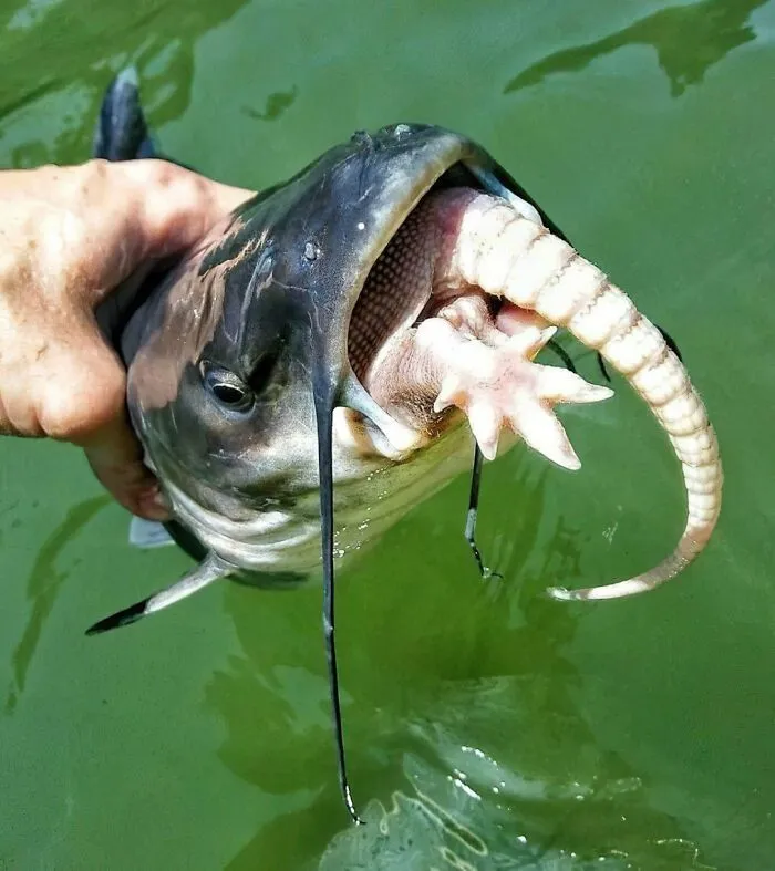 18. Такое не каждый день увидишь — сом ест броненосца