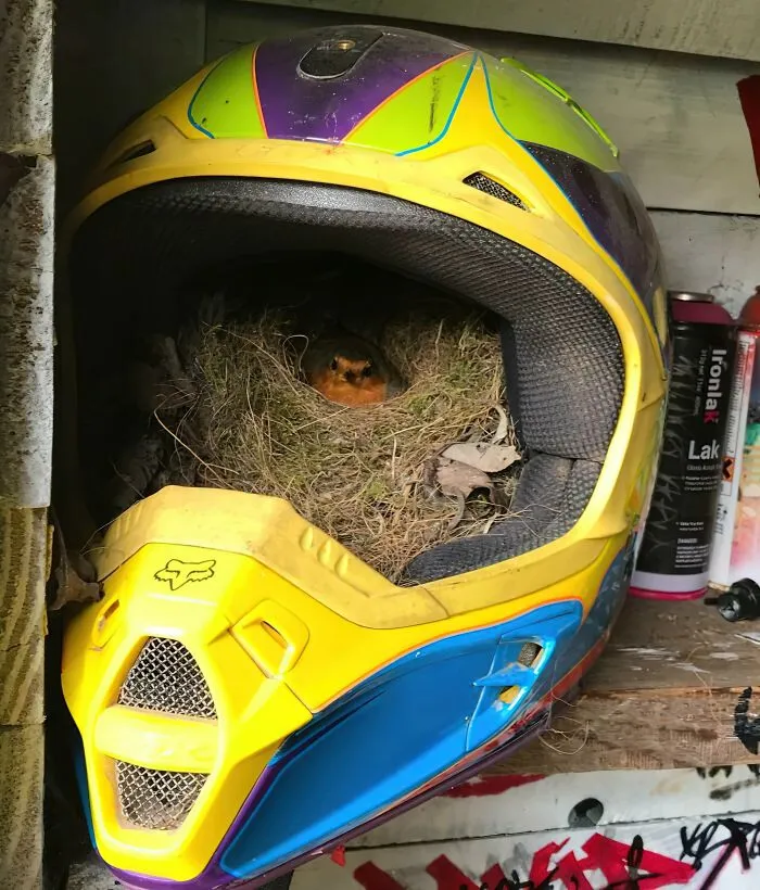 13. «Милая парочка крапивников переехала жить в походный ботинок в гараже моих родителей, и сегодня их семья пополнилась пятью птенцами»