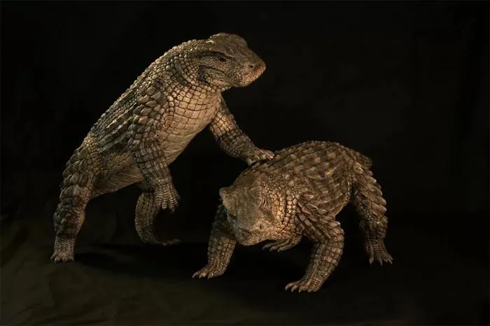 Чтобы не стать обедом, симозух срочно научился рыть неглубокие норы и прятаться в них. А чтобы хищник совершенно точно не смог достать рептилию из убежища, крокодилы обзавелись бронёй почти по всему телу, даже животу. Особенно бронированы были шея, спина и маленький хвостик. Широкой спиной рептилия закупоривала вход в нору, как пробка бутылку — и всё! Попробуй выковырять!