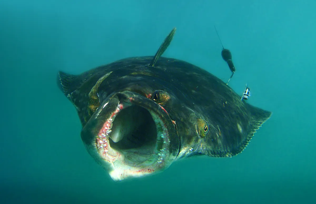 Но иногда палтусы поднимаются со дна морского, покидая свою зону влияния. Впрочем, не сказать, что рыб станет беззащитен. Врагов у взрослых палтусов немного: акулы, морские львы и косатки. Остальным морским обитателям рыба не по зубам. Одних отпугнут размеры — взрослые палтусы достигают длины в 2 метра, а неподтверждённые свидетельства увеличивают эту цифру в 2 раза. На рыбу таких размеров очень сложно охотиться. А вот неподготовленного к трешу рыбака отпугнёт внешний вид. Вы вообще видели, как палтус выглядит?