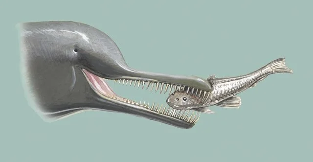 В остальном животины оригинальностью не отличаются: сбитое коренастое телосложение, небольшие тонкие ласты, серо-коричневый окрас под цвет мутной воды. Что же в нем такого необычного? Начнём с того, что индский речной дельфин — вообще ни разу не «дельфин». Согласно филогенетическим анализам, индские ребята относятся к реликтовому семейству платанистид. 29 миллионов лет назад парвотряд зубатых китов разделился на три семейства: зифииды (клюворылы), дельфиниды и наши с вами платанистиды. Дальше пути-дорожки этих семейств в эволюционной гонке круто разошлись, и реликтовым зубастикам пришлось хуже всего.
