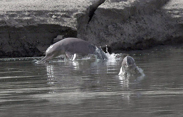 Но даже в этом болоте дельфинам не дают спокойно плавать! Если раньше животины свободно плескались на внушительной акватории Инда и притоков длиной в 3400 километров, то сейчас их можно встретить лишь на небольшом участке в 890 километров. А из-за ирригационных каналов плотин весь их крохотный ареал жёстко разделён на 5 изолированных популяций. По некоторым данным, всего в реке барахтается около 1800 особей.