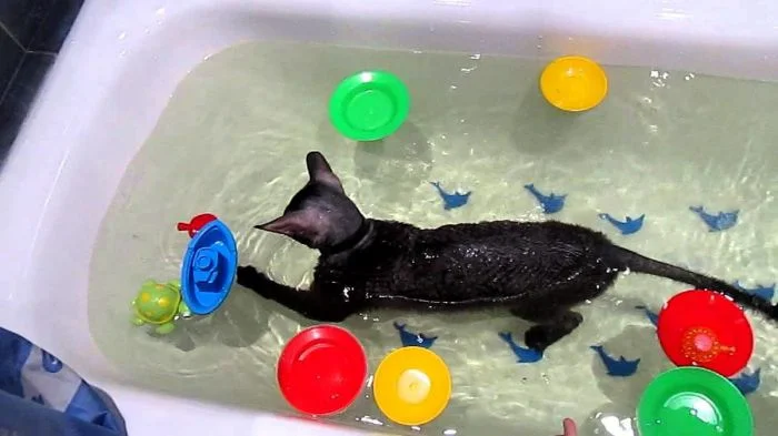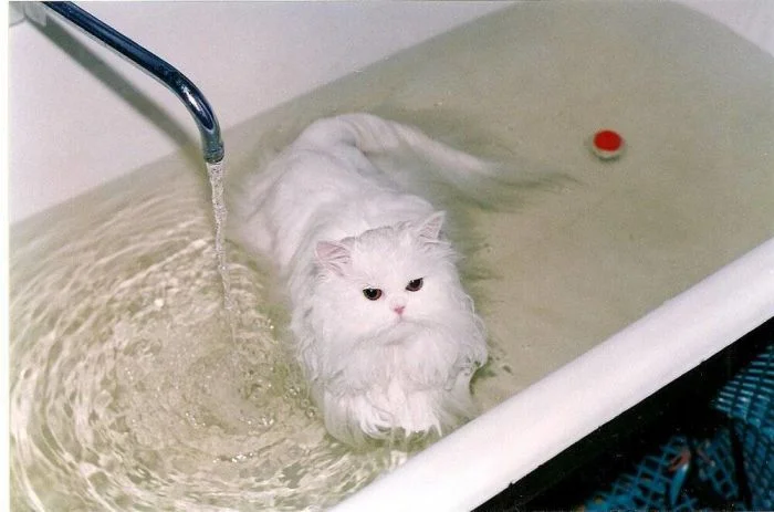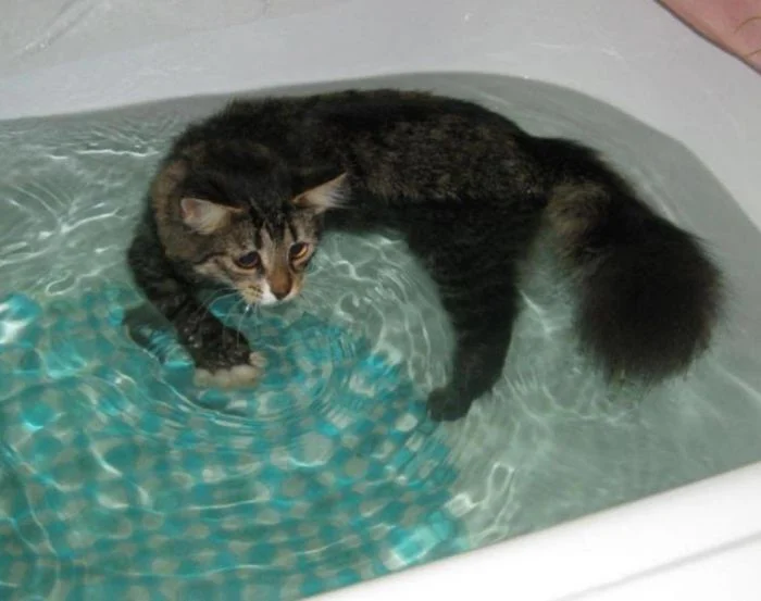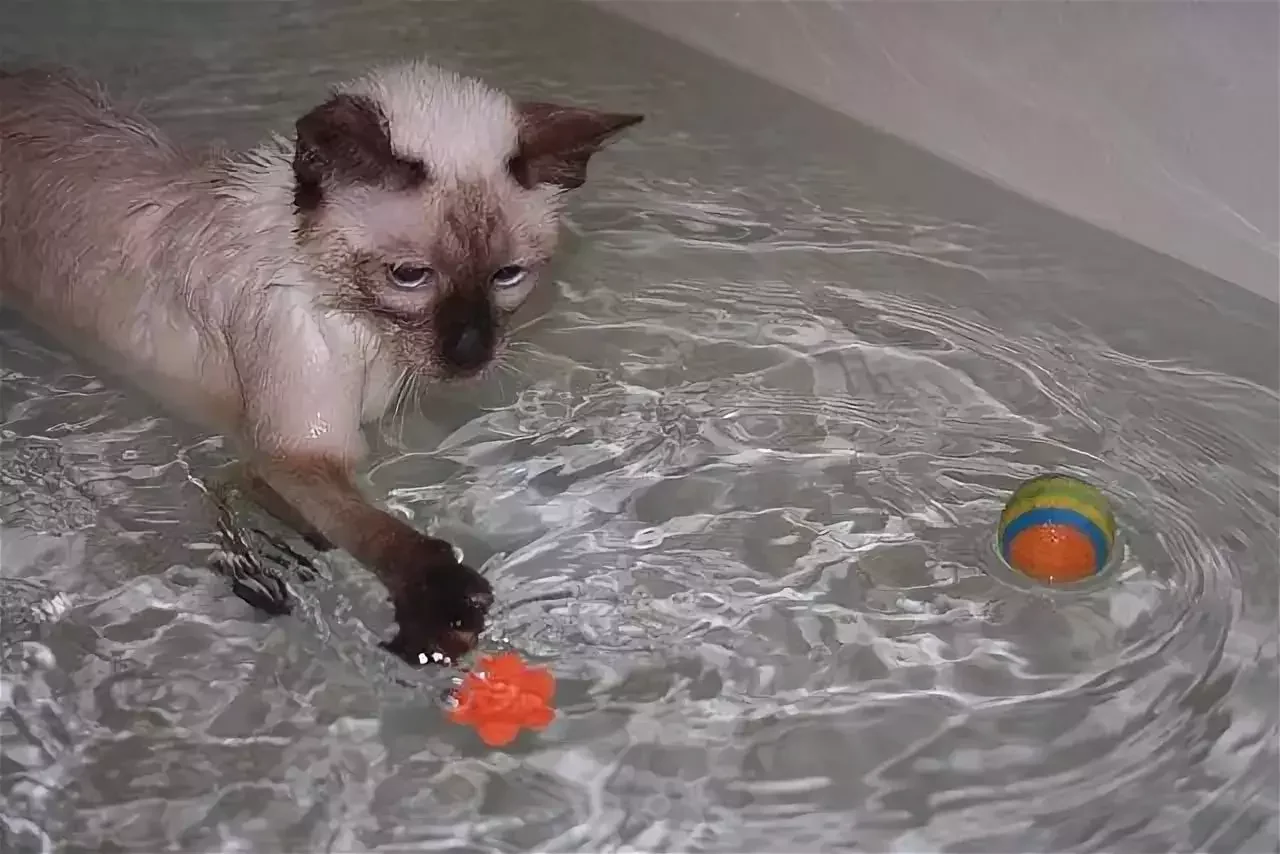 Но среди котеек встречаются экземпляры, которые переносят водные процедуры вполне себе благосклонно и даже не прочь расслабиться, подрейфовав на спокойной глади. Видимо, что-то в этой мокрой и гадкой водице всё же есть.