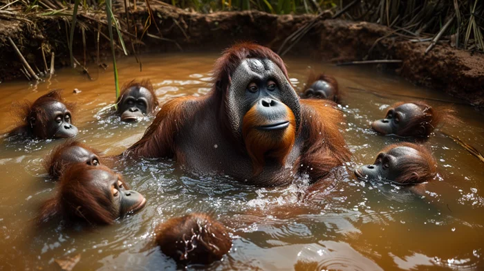 Орангутаны умеют грести на каноэ и даже заниматься подводной охотой!