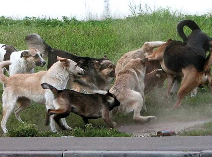 Сноска для тех, кто встретил собачью свадьбу во время прогулки со своей собственной собакой: делайте всё то же самое, но при нападении не берите животинку на руки! Кинутся на неё, а порвут вас. Лучше всего встать впереди питомца, снять с него намордник и выставить что-нибудь перед вами и стаей, как барьер. Если получится, возьмите собаку за ошейник и отстегните поводок — металлический карабин на его конце тоже можно использовать как средство самообороны.