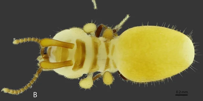 Австроспирахты принадлежат к семейству стафилинид, пожалуй, самому многочисленному семейству жуков. Оно почти целиком состоит из хищников, и хищников неплохих. Но герои этой статьи просто слабаки — 2-3 миллиметра длины, полупрозрачный экзоскелет, микроскопические челюсти. С такими данными охотиться не получится, только побираться. Вот они и пошли по миру.