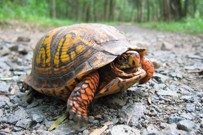 Это каролинская коробчатая черепаха, у нее подобная необычная расцветка.