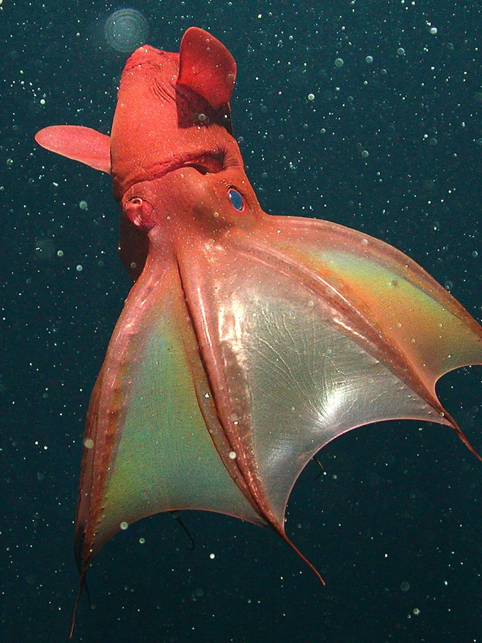 Дело в том, что эти животные страдают от пластика, которые проникает даже сюда. Пластик, который они ловят своими отростками, заменяет им еду, вызывая чувство сытости. И адский вампир недоедает и умирает от нехватки питательных веществ.