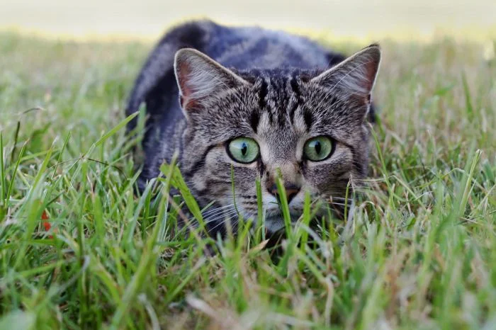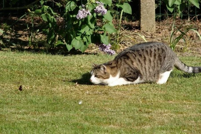 В память о временах, когда добычей пропитания кошкам приходилось заниматься самостоятельно, осталось умение фокусироваться и сосредотачиваться на добыче при выслеживании или перед финальным прыжком. Выражение моськи при этом у котеек непередаваемое. Изобразить такую эмоцию специально не получится, поэтому приходится ловить момент, когда питомец охотится на мышку, птичку или ногу хозяина.