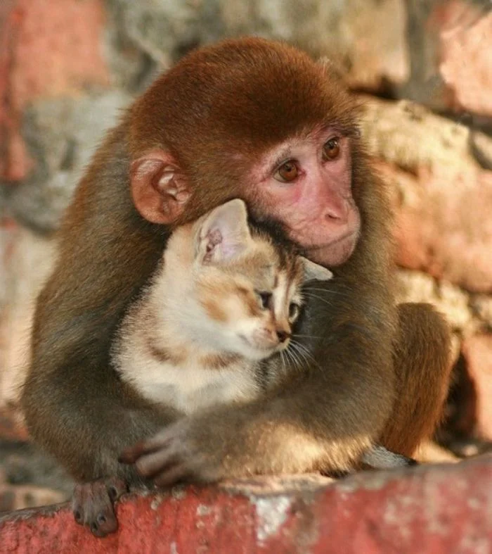 Но объятия – это не только про людей. Братья наши меньшие тоже частенько их используют. И не только в отношении представителей своего вида. Выглядят пушистые обнимашки невероятно искренне, трогательно и нежно.