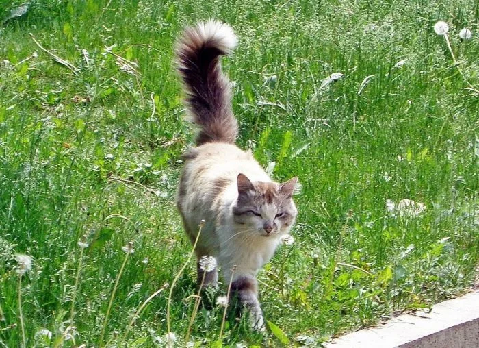Если киса пушит его, то видит угрозу. А когда бьёт себя по бокам, это явный признак раздражения. Загнутый в виде вопросительного знака хвостик – показатель дружелюбия. Но это только базовая азбука кошачьих хвостов. Есть в ней много других сигналов, о значении которых котики не говорят, а нам остаётся только догадываться и предполагать об истинном смысле хвоста, завёрнутого в ту или иную завитушку.